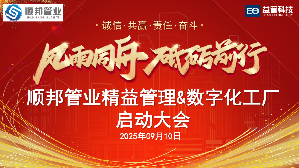 9月10日,江苏顺邦管业科技有限公司精益管理&数字化工厂项目启动大会顺利召开。顺邦管业作为专注于管材领域的科技企业,以高品质管材研发与生产为核心业务,凭借稳定可靠的产品品质与贴心专业的服务,在行业内积累了良好口碑,持续为客户提供高效的管材应用解决方案。益管科技将携丰富经验与专业技术全程带教,共同推进